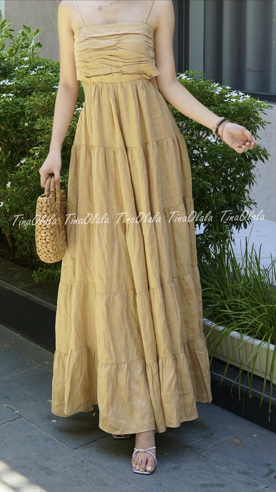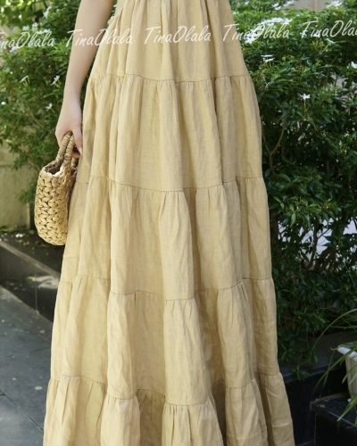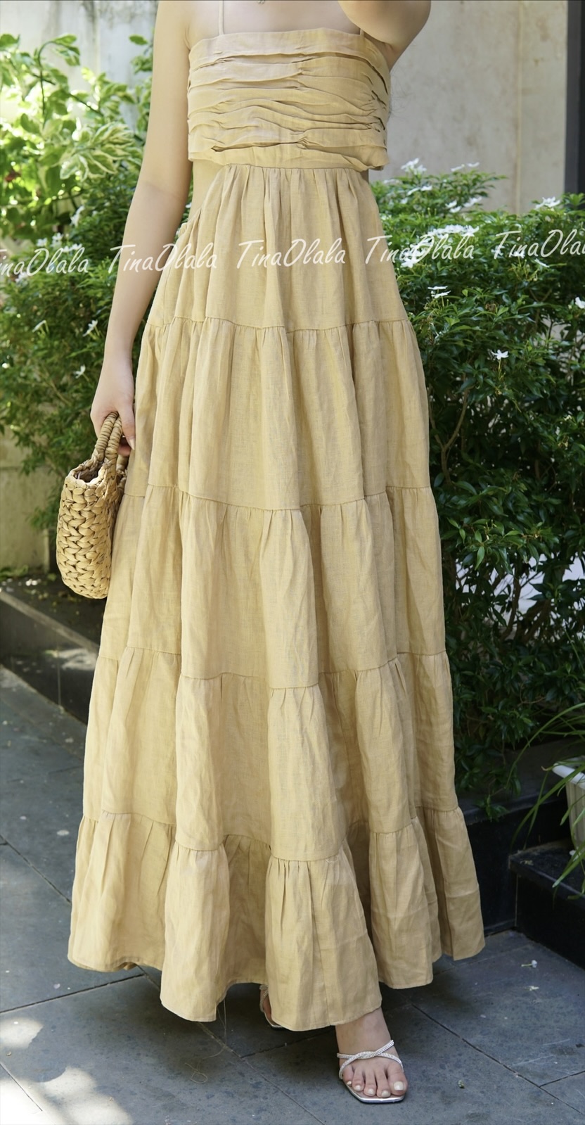Radiate effortless charm in our Desert Bloom Linen Dress — a dreamy full-length silhouette designed for warm-weather wanderers and natural romantics. This Linen Summer Dress features a soft ruched bodice, adjustable spaghetti straps, and tiered layers that float with every step.