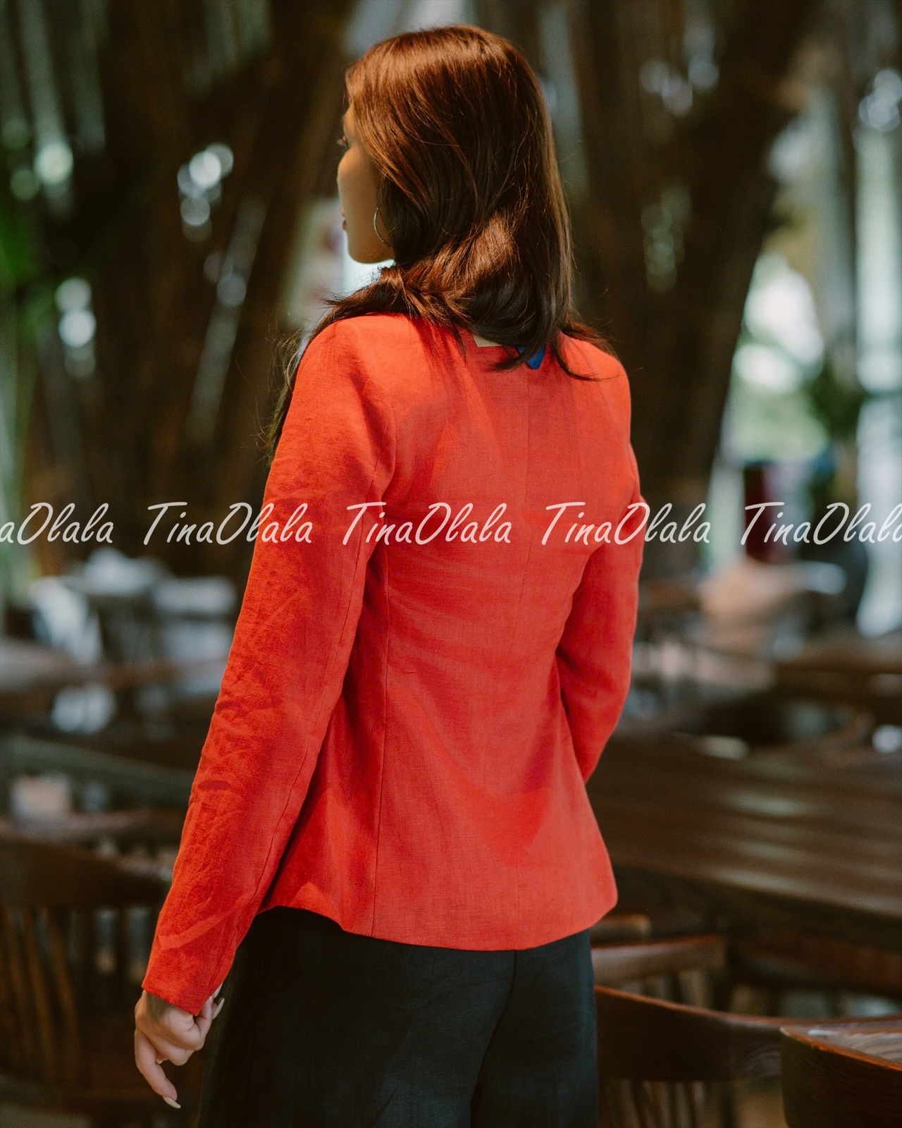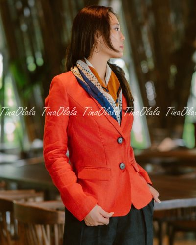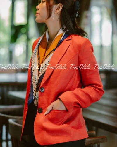 From office to after-hours, this red linen blazer adds a touch of empowerment to every outfit.