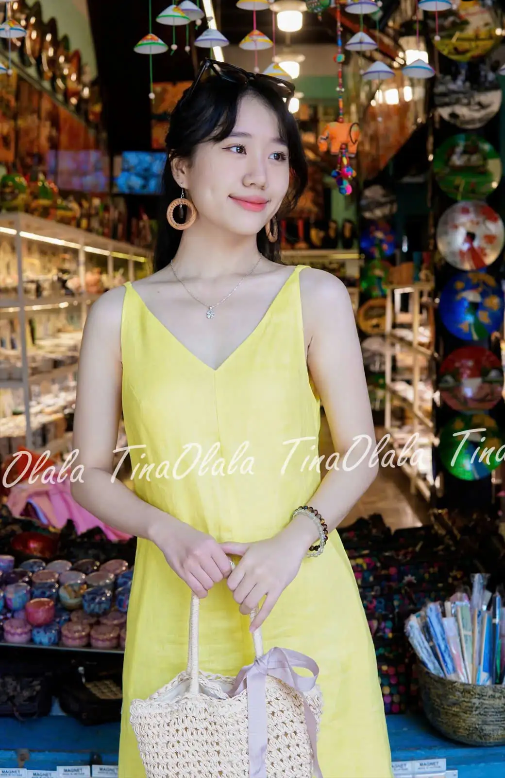 Turn heads this season with our Golden Glow V-Neck Linen Dress – a perfect blend of elegance, comfort, and subtle allure.