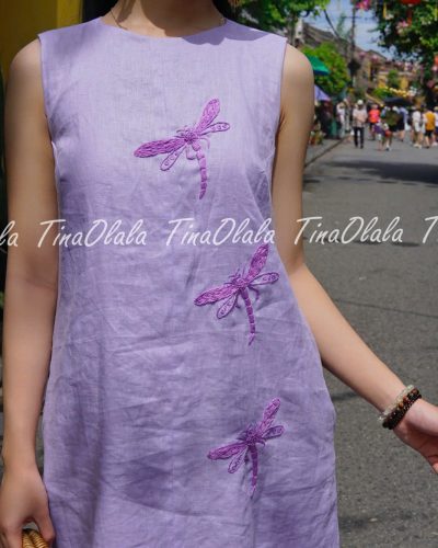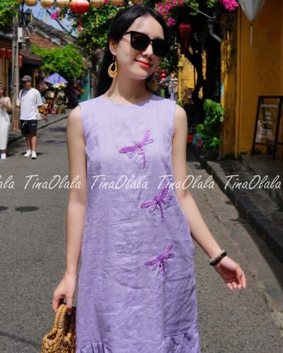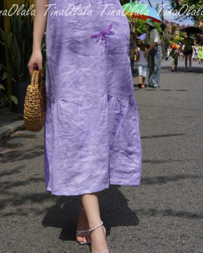 Step into effortless elegance with this Linen Summer Dress, a timeless piece crafted from 100% natural linen and delicately hand-embroidered with graceful dragonfly motifs. Designed and handmade in Hoi An, Vietnam, this Linen Dress for Women is perfect for warm-weather days, offering both comfort and breathable beauty.